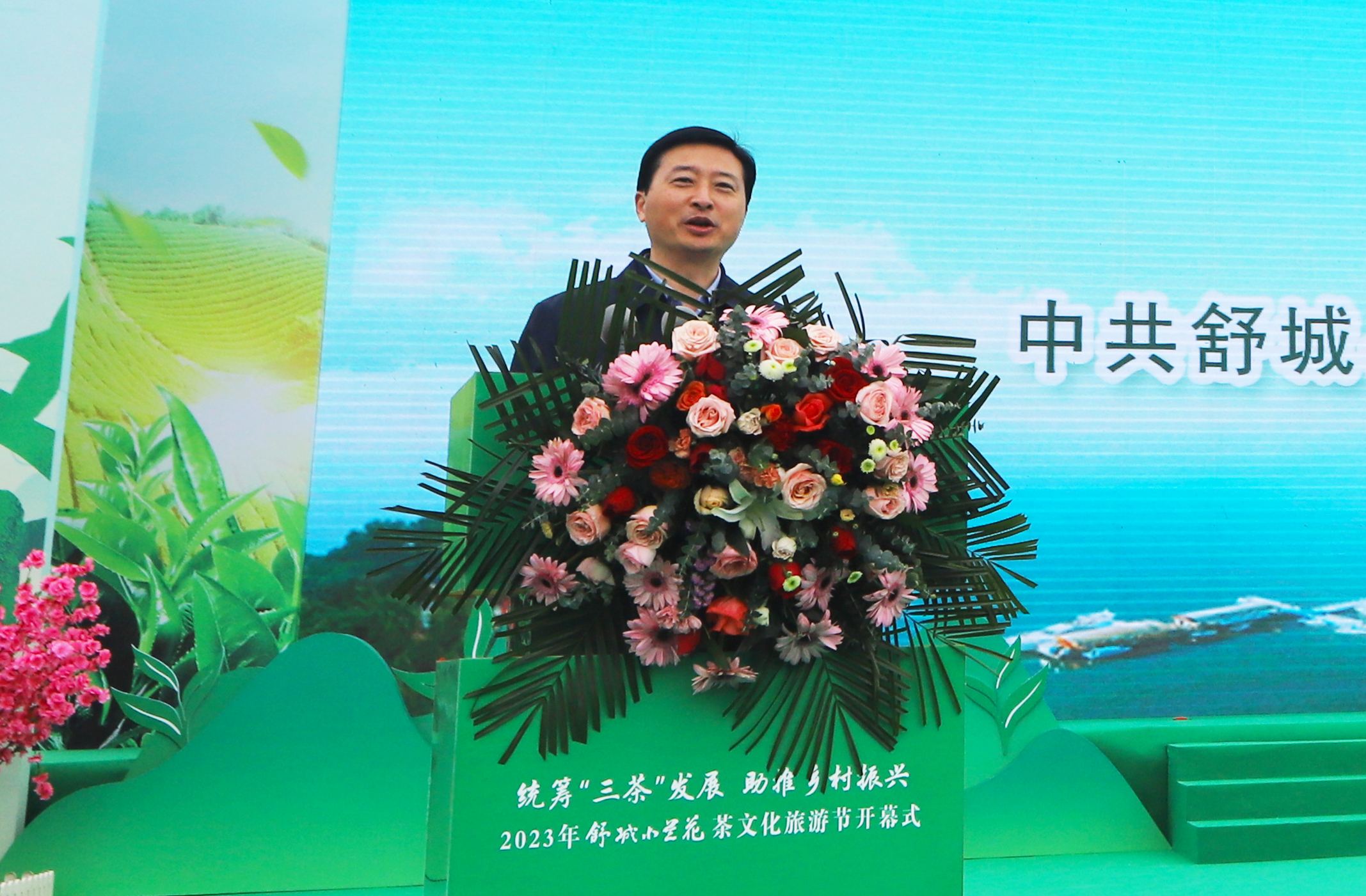 安徽省政协原副主席、安徽农业大学原校长、中国国际茶文化研究会副会长夏涛宣布2023年舒城小兰花茶文化旅游节开幕。