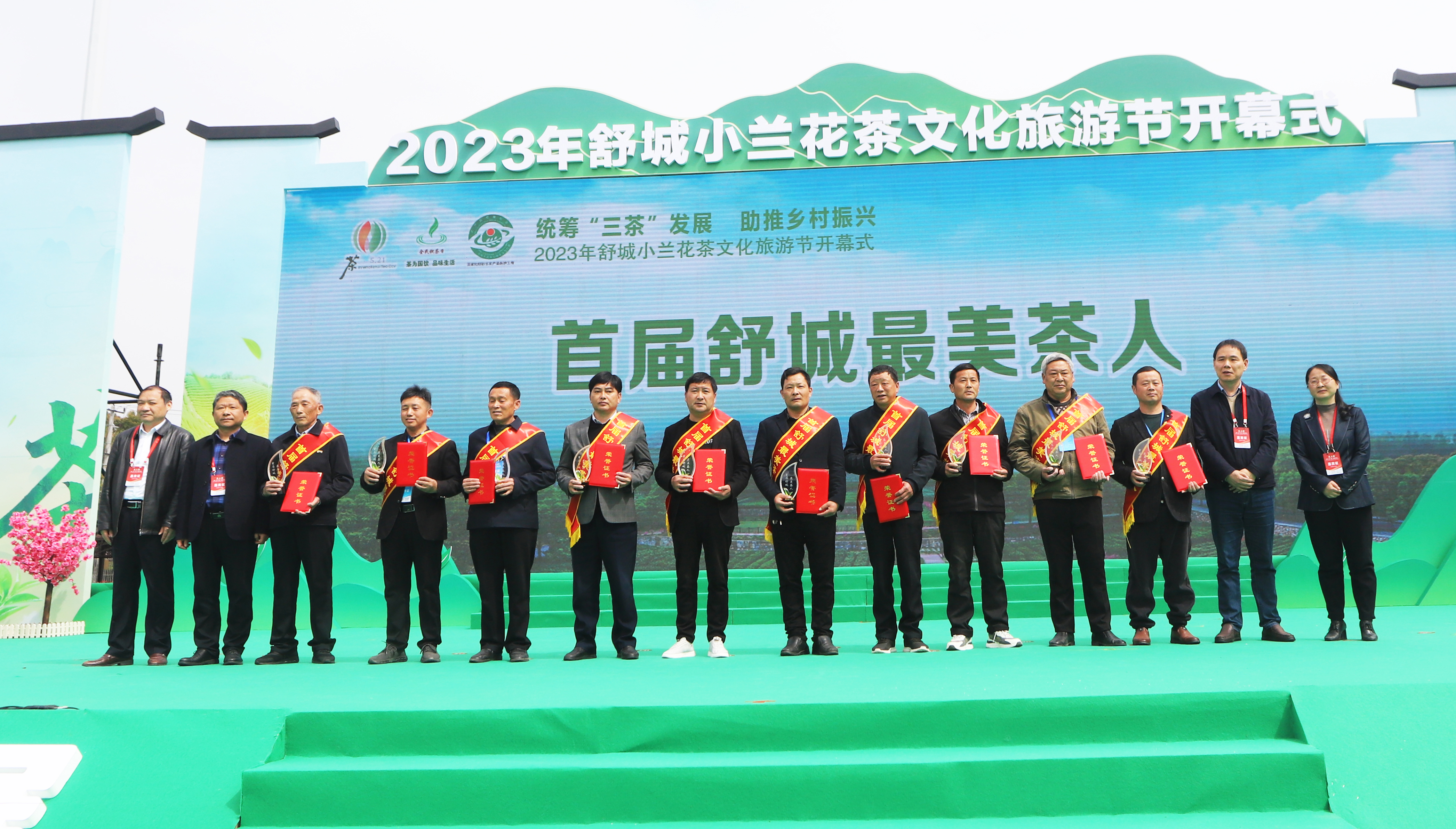 活动期间还举行了舒城小兰花茶旅融合示范乡镇,十佳茶叶经营主体,首届舒城最美茶村,首届舒城最美茶人颁奖仪式,全国有机农产品(茶)基地授牌仪式以及2023年舒城小兰花传统工艺炒制大赛。