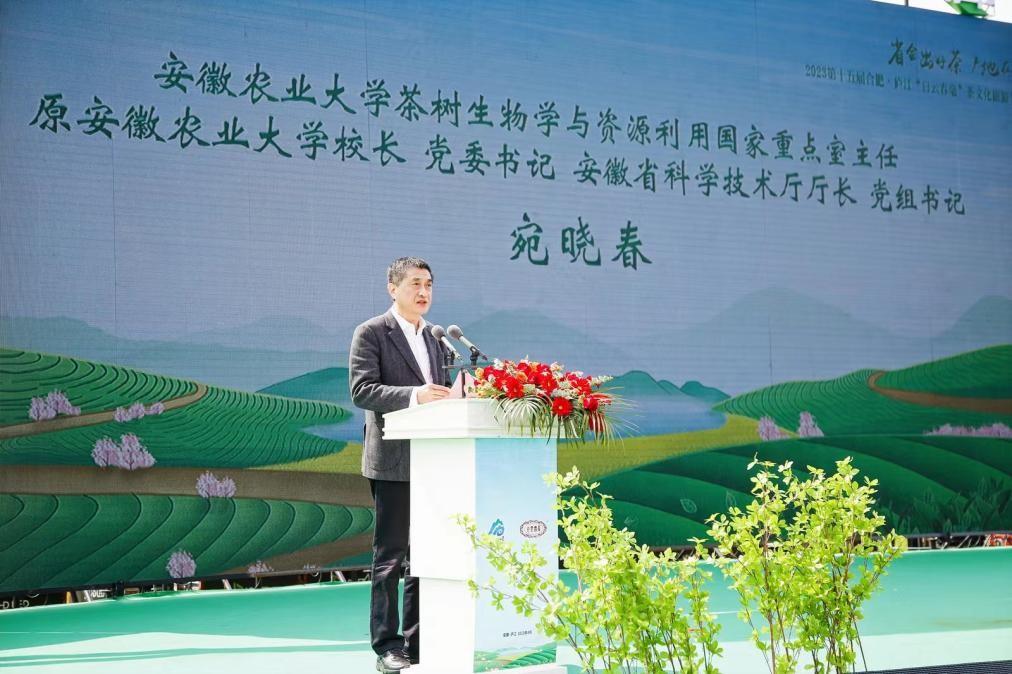 安徽农业大学茶树生物学与资源利用国家重点实验室主任、教授宛晓春重点推介了庐江县茶产业和白云春毫茶品牌,向与会嘉宾详细介绍庐江茶业历史底蕴、自然禀赋、产业基础、品牌建设等情况,推动“白云春毫”茶品牌形象逐渐深入人心。现场还发布了白云春毫茶IP卡通形象“陆小羽”和“庐小毫”兄妹,憨态可掬、清新治愈的形象,成为庐江茶品牌和游客之间的“友谊大使”;同时发布了庐江茶主题原创歌曲《茶香醉庐江》,优美的旋律、动人的歌词将悠悠茶韵尽现,吟唱出一幅宁静致远的美丽乡村茶园画卷。